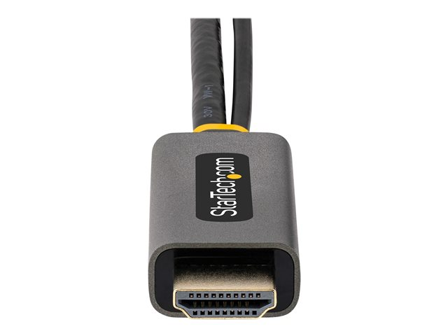 HDMI till DP-omvandlaren har en 30 cm (1 fot) kabel mellan HDMI- och DP-anslutningarna, vilket minskar belastningen på portar och anslutningar. Adaptern har en medföljande 30 cm (1 fot) USB-A-kabel för anslutning till en strömförsörjd USB-port i närheten eller en USB-väggladdare.