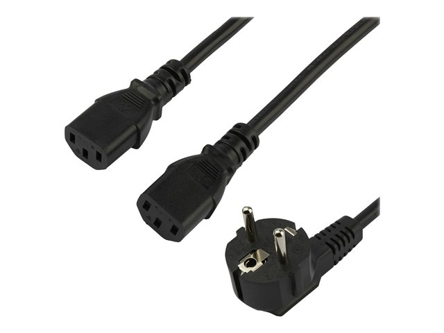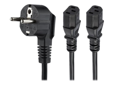 StarTech.com 2m (6ft) Computer Power Cord, 18AWG, EU Schuko to 2x C13 Power Cord, 10A 250V, Black Replacement AC Cord, TV/Monitor Power Cable, Schuko CEE 7/7 to IEC 60320 2x C13 Power Cord - PC Power Supply Cable - Strömkabel - power CEE 7/7 (hane) till power IEC 60320 C13 - AC 250 V - 10 A - 2 m - svart