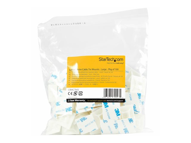 StarTech.com 100-pack kabelbandfästen med självhäftande tejp för kabelband på 5,5 mm - Buntbandfäste i nylon/plast - El-/nätverkskabelomslagsfästen / Antändlighetsklass 94V-2 och UL-klassad TAA - Kabelfästen - vit - TAA-kompatibel (paket om 100) - för StarTech.com 1U CBMCTM3