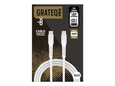 GRATEQ PRO - USB-kabel - 24 pin USB-C (hane) till 24 pin USB-C (hane) - 5 A - 1.5 m - USB-strömförsörjning (240W), flätad kabel - vit
