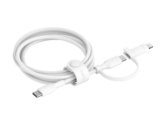 Belkin BoostCharge Pro 2-in-1 - USB-kabel - USB-C (hane) till Lightning, USB-C (hane) - USB 2.0 - 1.5 m - up to 480 Mbps, Snabbladdning upp till 60 W - vit