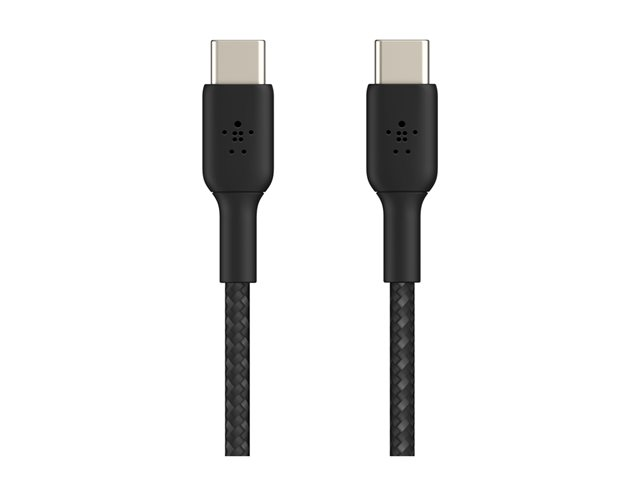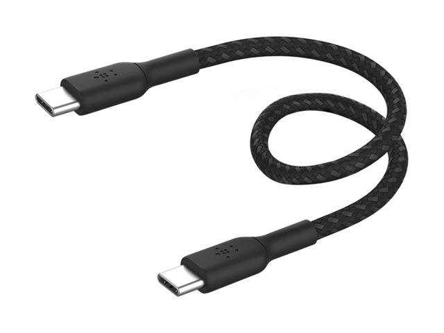 Belkin BoostCharge - USB-kabel - USB-C (hane) till USB-C (hane) - USB 2.0 - 20 V - 3 A - 15 cm - USB Power Delivery (60W), flätad kabel - svart