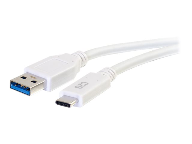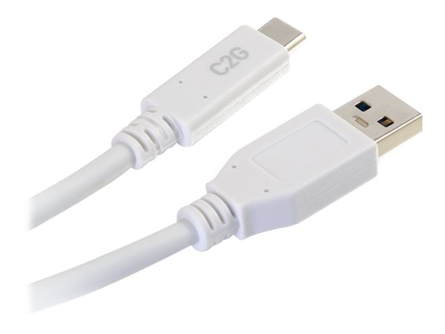 C2G 10ft USB C 3.0 to USB Cable - USB C to USB A - M/M - USB-kabel - USB typ A (hane) till USB-C (hane) - USB 3.1 - 30 V - 3 A - 3.05 cm - vit