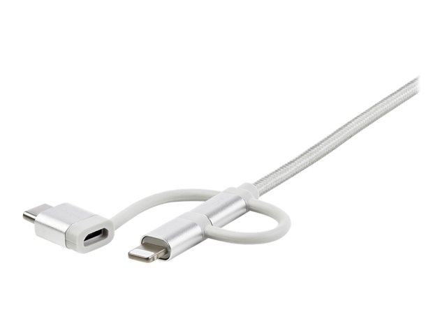 StarTech.com 1 m USB-multiladdningskabel - USB till Micro-USB eller USB-C eller Lightning för iPhone/ iPad/iPod/Android - Apple MFi-certifierad - 3 i 1 USB-laddare - Vävd - USB-kabel - USB (hane) till mikro-USB typ B, Lightning, USB-C (hane) - 1 m - silver