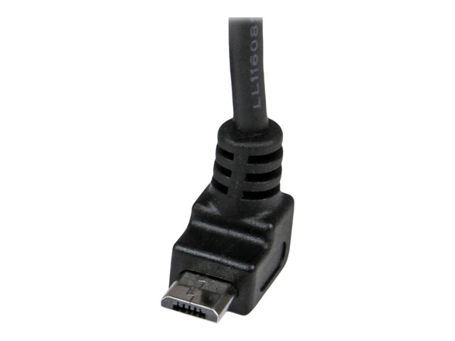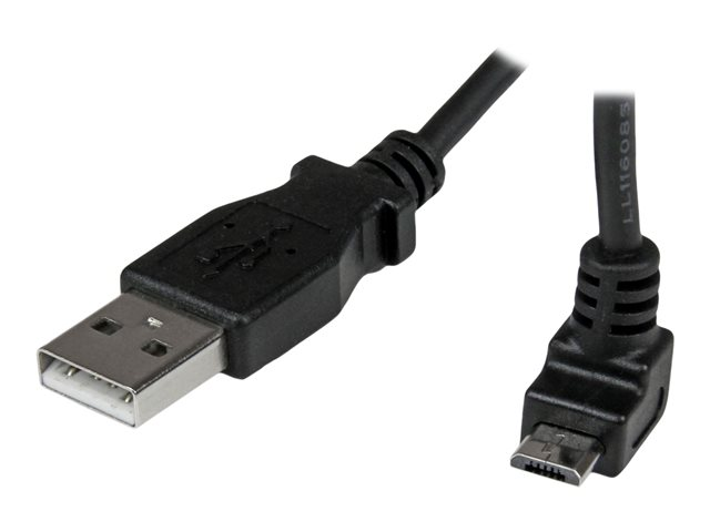 StarTech.com 2m Micro USB Cable Cord - A to Up Angle Micro B - Up Angled Micro USB Cable - 1x USB A (M), 1x USB Micro B (M) - Black (USBAUB2MU) - USB-kabel - mikro-USB typ B (hane) till USB (hane) - USB 2.0 - 2 m - formpressad, 90° anslutning - svart