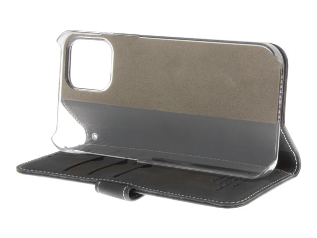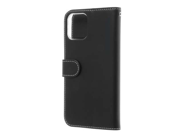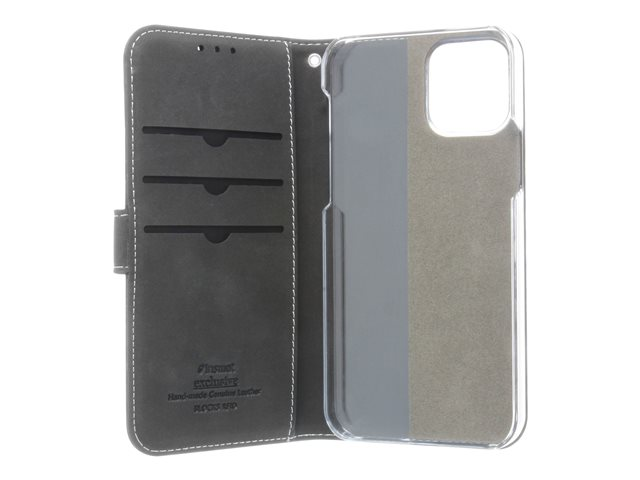 Insmat Exclusive Flip Case - Vikbart fodral för mobiltelefon - papper, kartong, läder, polykarbonat, bomull, aluminiumfolie - svart - för Apple iPhone 12, 12 Pro