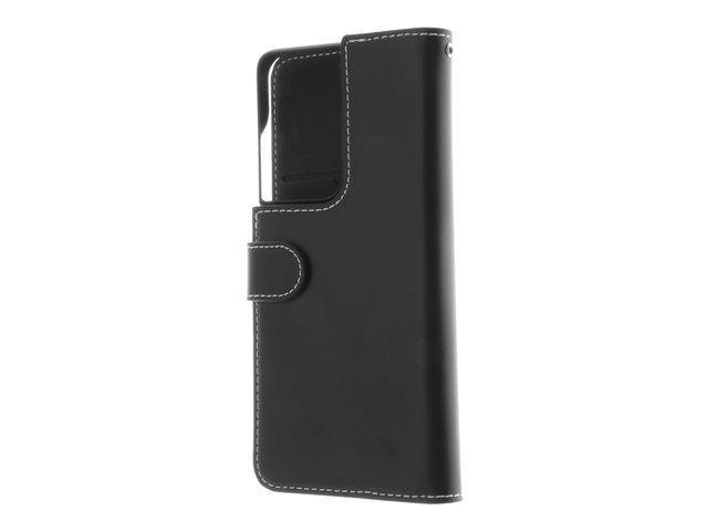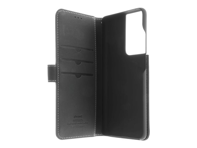 Insmat Exclusive Flip Case - Vikbart fodral för mobiltelefon - papper, kartong, läder, aluminiumfolie, termoplastisk polyuretan (TPU) - svart - för Samsung Galaxy S21 Ultra 5G