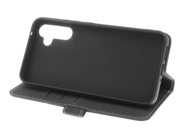 Insmat Exclusive - Vikbart fodral för mobiltelefon - genuint läder, termoplastisk polyuretan (TPU), kartong+papper+aluminiumfolie - svart - för Samsung Galaxy A54