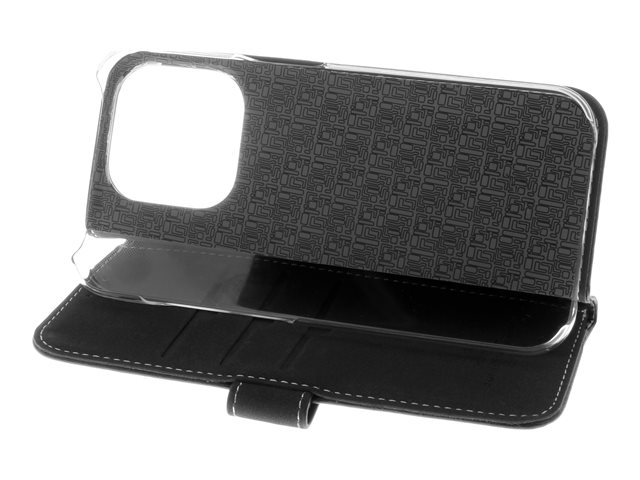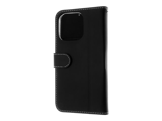 Insmat Exclusive - Vikbart fodral för mobiltelefon - genuint läder, kartong+papper+aluminiumfolie - svart - för Apple iPhone 15 Pro
