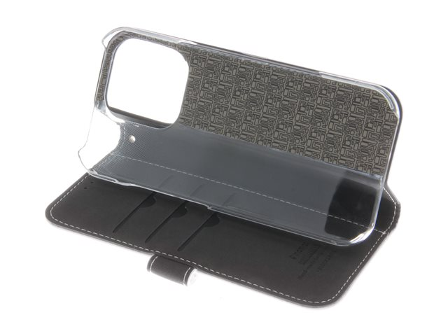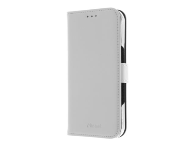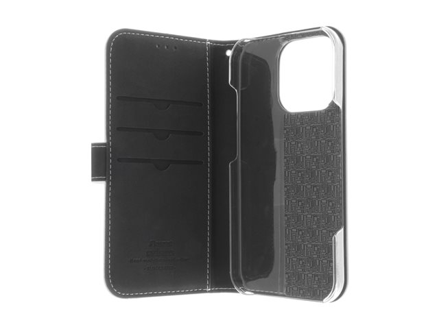 Insmat Exclusive - Vikbart fodral för mobiltelefon - genuint läder, kartong+papper+aluminiumfolie, polykarbonat (PC), bomullssömmar - vit - för Apple iPhone 16 Pro