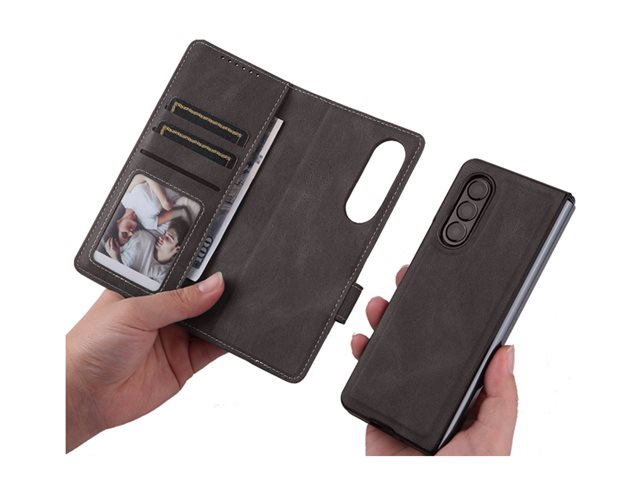 Insmat Exclusive - Vikbart fodral för mobiltelefon - magnetisk - polyuretanläder, kartong+papper, termoplastisk polyuretan (TPU), bomullssömmar - svart - för Samsung Galaxy Z Fold6