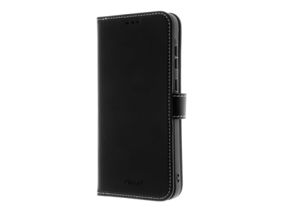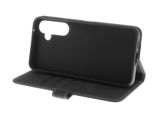 Insmat Exclusive - Vikbart fodral för mobiltelefon - genuint läder, hållare av termoplastiskt polyuretan (TPU), bomullssömmar, kartong+papper+aluminiumfolie - svart - för Samsung Galaxy S24 FE