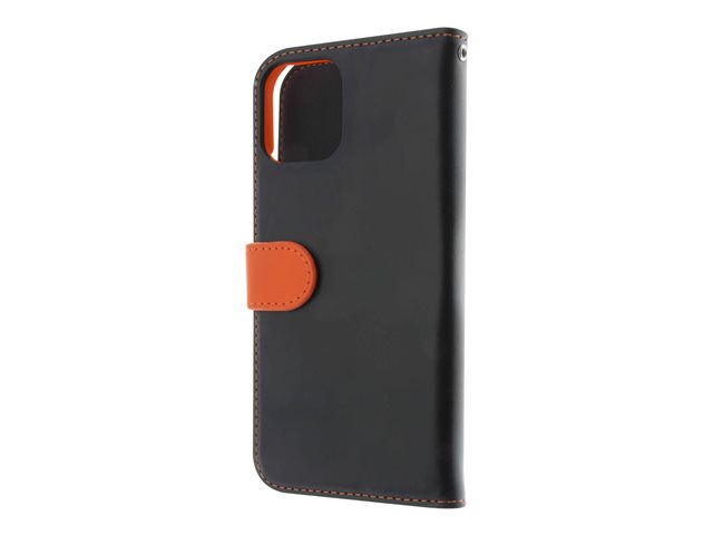 Insmat Exclusive - Vikbart fodral för mobiltelefon - läder, kartong+papper+aluminiumfolie - svart/orange - för Apple iPhone 11