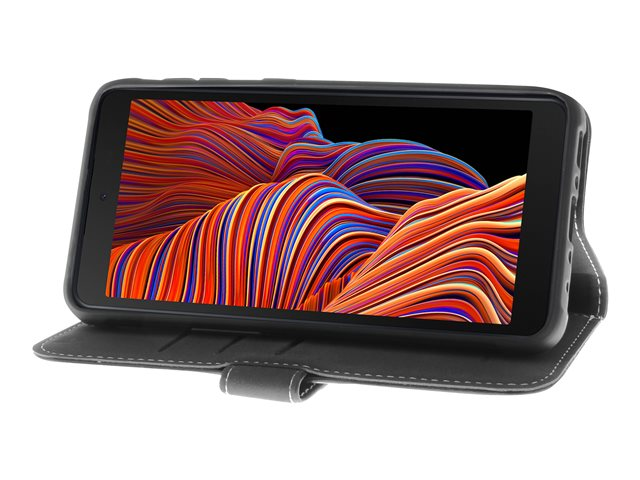 Insmat Flip Case - Vikbart fodral för mobiltelefon - genuint läder, termoplastisk polyuretan (TPU) - svart - för Samsung Galaxy Xcover 5