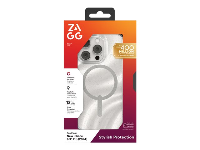 ZAGG Milan Snap - Baksidesskydd för mobiltelefon - MagSafe-kompatibilitet - grafen - virvlande glitter - för Apple iPhone 16 Pro