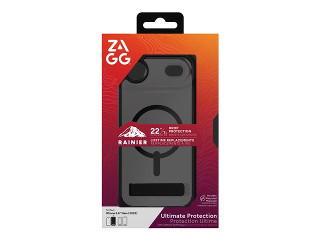 ZAGG Rainier Snap - Baksidesskydd för mobiltelefon - robust - med fällbart ställ - MagSafe-kompatibilitet - grafen - rök svart - för Apple iPhone Air