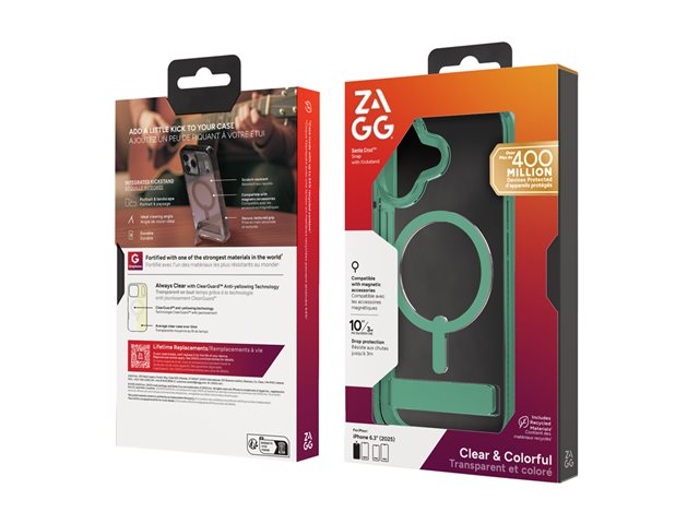 Zagg Santa Cruz Snap - Baksidesskydd för mobiltelefon - med fällbart ställ - MagSafe-kompatibilitet - mystisk grön - för Apple iPhone 17
