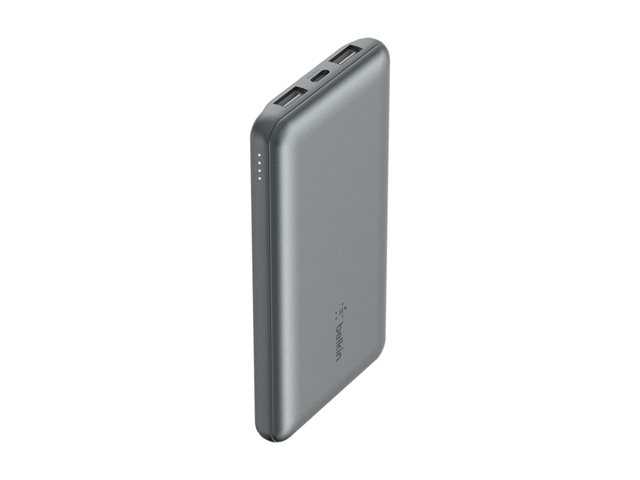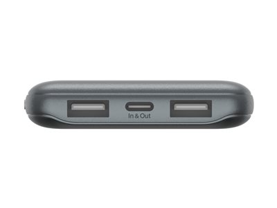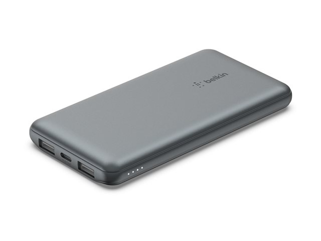 Belkin BoostCharge - Power bank - 10000 mAh - 15 Watt - 3 A - 3 utdatakontakter (2 x USB, USB-C) - på kabel: USB-C - rymdgrå