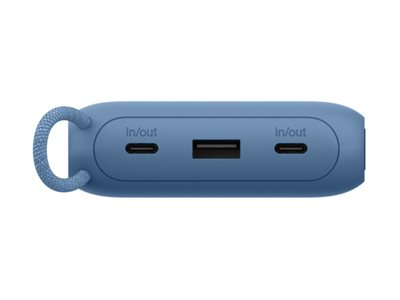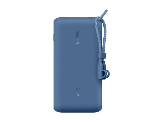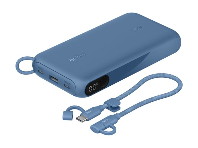 Belkin BoostCharge - Power bank - med display - 20000 mAh - 20 Watt - PD - 3 utdatakontakter (2 x USB-C, USB) - på kabel: USB-C - blå