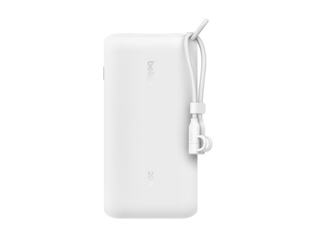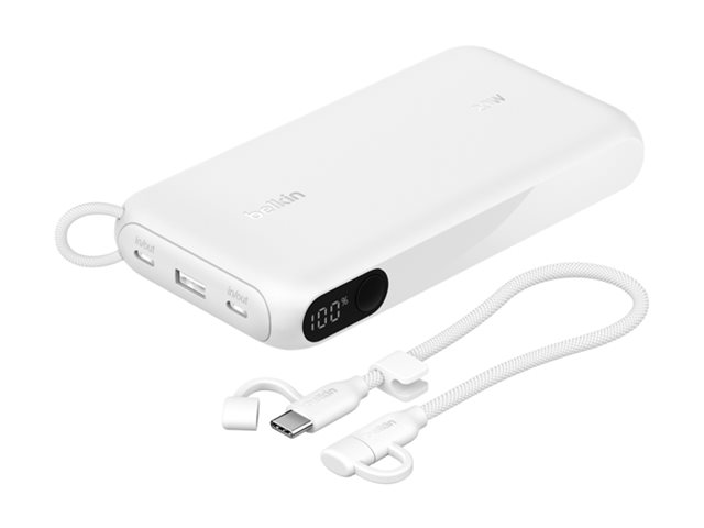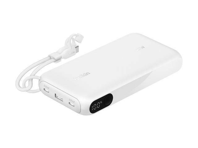 Belkin BoostCharge - Power bank - med display - 20000 mAh - 20 Watt - PD, Fast Charge - 3 utdatakontakter (USB-C, USB) - på kabel: USB-C - vit