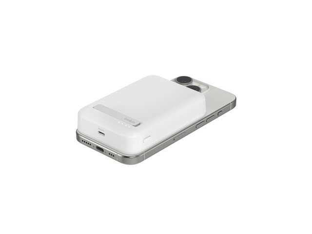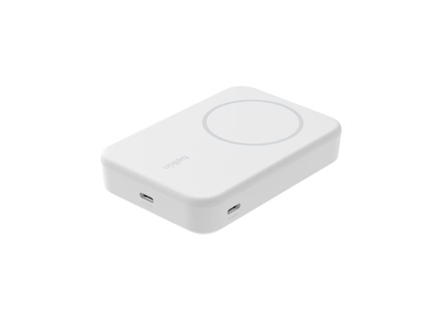 Belkin BoostCharge Pro - Trådlös powerbank - magnetisk med Qi2 - 10000 mAh - 15 Watt - Fast Charge, PD - 2 utdatakontakter (magnetisk, USB-C) - på kabel: USB-C - vit - för Apple iPhone 12, 13, 15; Google Pixel 6, 7; Samsung Galaxy S22+, S23, S23+