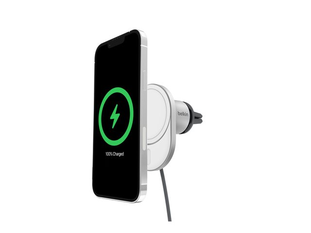 Belkin - Trådlös laddningshållare för bil - magnetisk med Qi2 + bilströmsadapter - 15 Watt - Fast Charge - grå