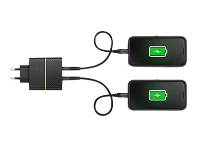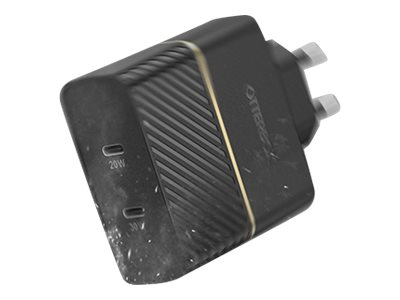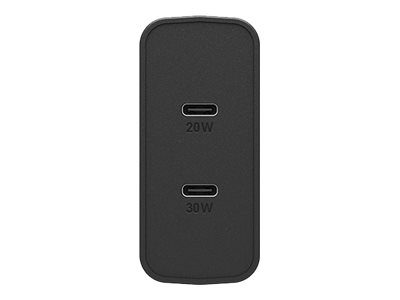 OtterBox Wall Charger - Strömadapter - 50 Watt - 3 A - PD 3.0, USB BC 1.2 - 2 utdatakontakter (USB-C) - svart skimmer