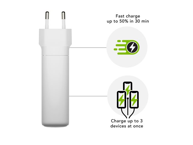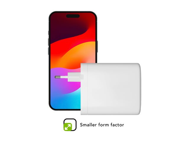 Egenskaper100 % återvinningsbar, kompakt design, GaN Technology, överhettningsskydd