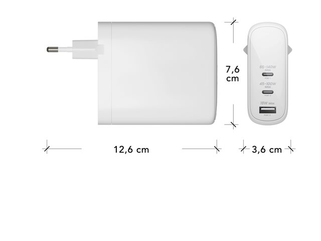 dbramante1928 re-charge - Strömadapter - 140 Watt - Strömmatning 3.1 - 3 utdatakontakter (USB-C, USB) - vit - Europa CI140EUWH7101