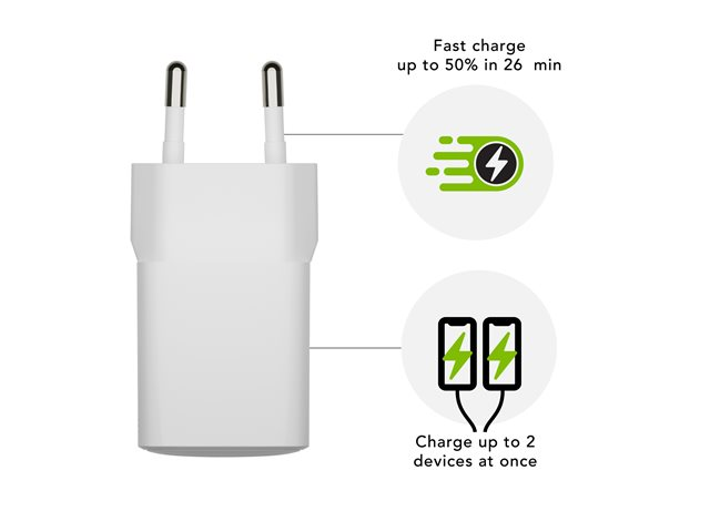 dbramante1928 re-charge - Strömadapter - 25 Watt - 2 utdatakontakter (USB-C, USB) - vit - Europa