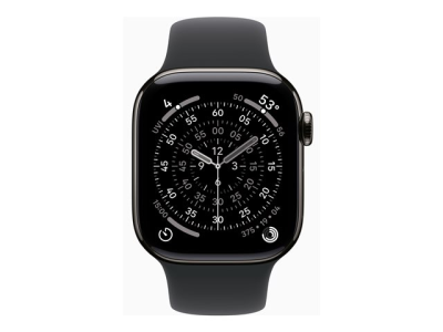 Apple Watch Series 11 (GPS + Cellular) - 42 mm - skiffer titan - smart klocka med sportband - fluoroelastomer - svart - bandstorlek: S/M - 64 GB - Bluetooth, LTE, Wi-Fi 4, UWB - 5G - 34.6 g MF8R4QN/A