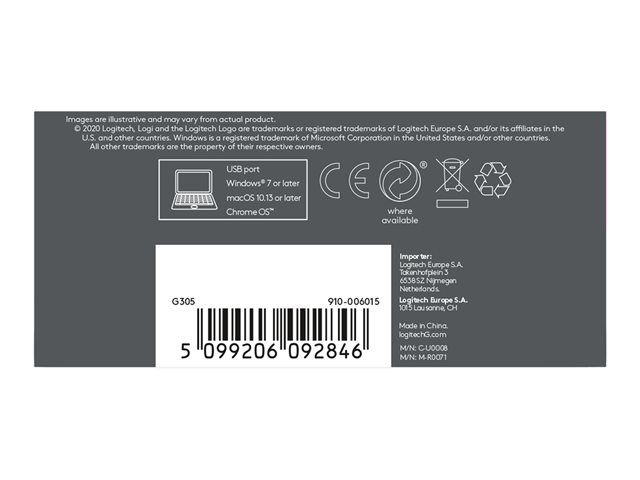 Logitech G G305 - Mus - optisk - 6 knappar - trådlös - 2.4 GHz - trådlös USB-mottagare - blå