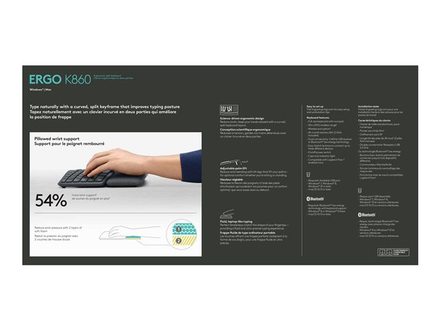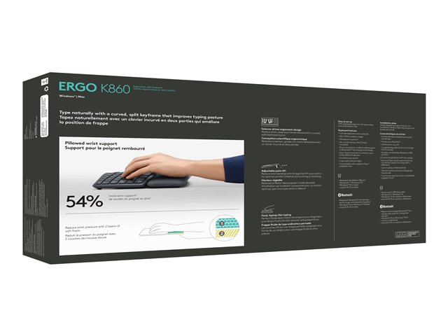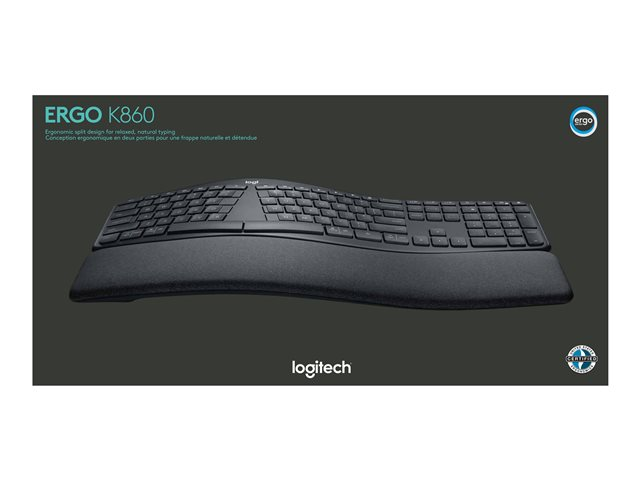 Logitech ERGO K860 - Tangentbord - trådlös - 2.4 GHz, Bluetooth 5.0 - hela norden