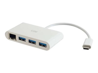 C2G USB C Ethernet and 3 Port USB Hub White - Hub - 3 Ports - Nätverksadapter - USB-C - Gigabit Ethernet x 1 + USB 3.0 x 3 - vit