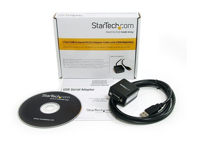 StarTech.com FTDI USB till seriell RS232-kabeladapter med 1 port och COM-retention - Seriell adapter - USB - RS-232 - svart