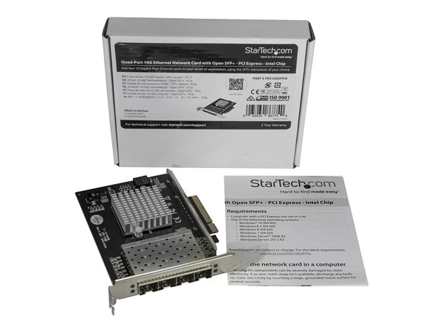 StarTech.com SFP+-servernätverkskort med fyra portar - PCI Express - Intel XL710-chip - Nätverksadapter - PCIe x8 - 10 Gigabit SFP+ x 4 - svart