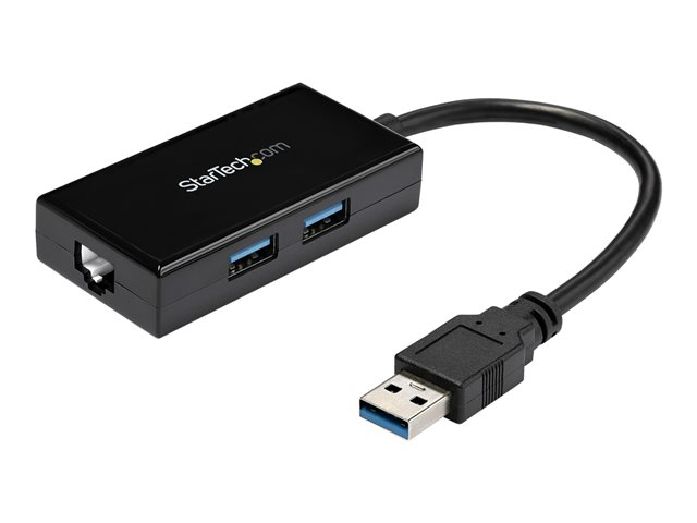 StarTech.com USB 3.0 till Gigabit-nätverksadapter med inbyggd USB-hubb med 2 portar - Nätverksadapter - USB 3.0 - Gigabit Ethernet x 1 - svart USB31000S2H