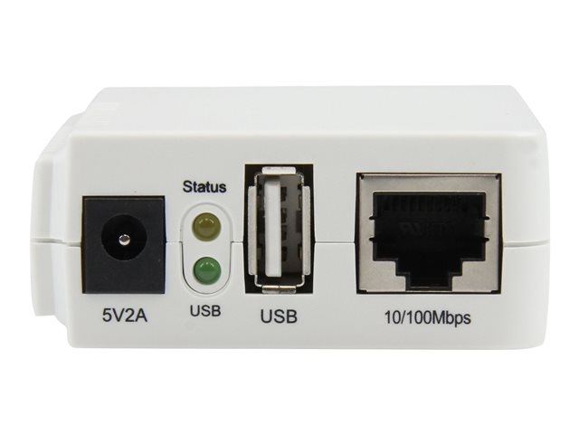 StarTech.com USB Wireless-N-nätverksskrivarserver med en 10/100 Mbps-port - 802.11 b/g/n - Printserver - USB 2.0 - 10/100 Ethernet x 1 - vit