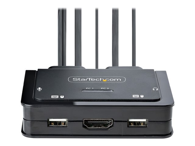 StarTech.com 2-Port Hybrid USB-C HDMI Cable KVM Switch, 4K 60Hz, Compact KVM with 6ft/1.8m USB-A/HDMI/Audio & 4ft/1.2m USB-C Integrated Host Cables, Bus Powered - Remote Push Button/Hotkey Switching (C2-H46-UAC-CBL-KVM) - Omkopplare för tangentbord/video/mus/ljud/USB - kompakt - 2 x KVM/ljud/USB - 1 lokal användare - skrivbordsmodell C2-H46-UAC-CBL-KVM