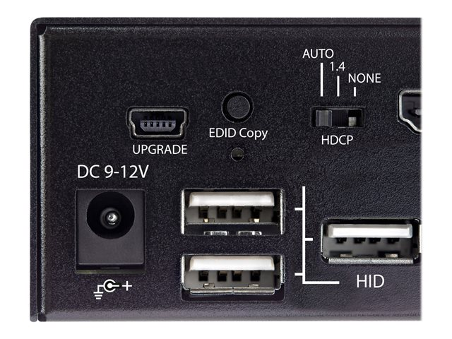 StarTech.com 2-ports HDMI KVM-switch - En skärm 4K 60 Hz Ultra HD HDR - Desktop HDMI 2.0 KVM-switch med 2 portar USB 3.0-hubb (5 Gbit/s) och 4x USB 2.0 HID, ljud - Snabbtangenter för omkoppling - TAA - Omkopplare för tangentbord/video/mus/ljud - 2 x KVM/ljud - 1 lokal användare - skrivbordsmodell, rackmonterbar - TAA-kompatibel