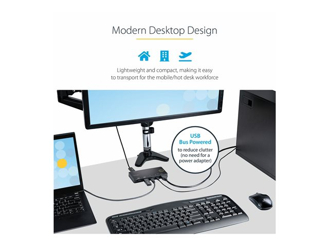 StarTech.com 2-ports hybrid USB-A + HDMI och USB-C KVM-switch - Enskild 4K 60 Hz HDMI 2.0-skärm - Kompakt HDMI KVM-switch för stationär/bärbar dator - USB-bussdriven - Thunderbolt 3-kompatibel - Omkopplare för tangentbord/video/mus/ljud - 2 x KVM/ljud - skrivbordsmodell