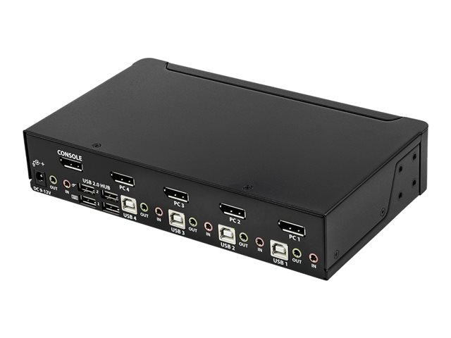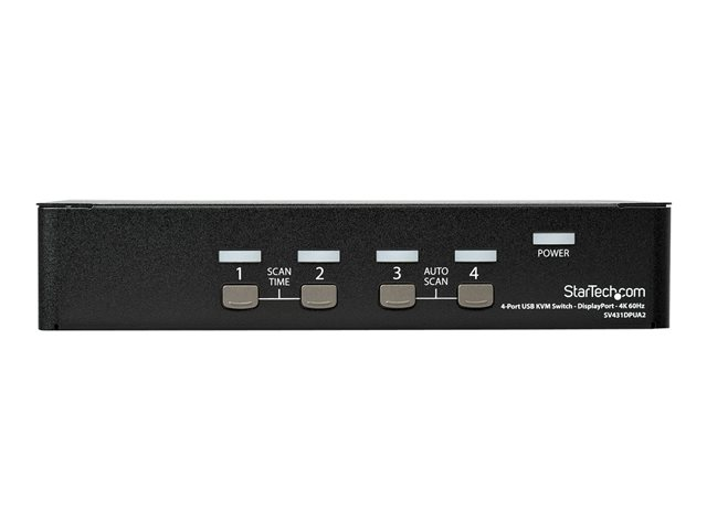 StarTech.com 4-ports DisplayPort KVM-switch med 4K 60 Hz upplösning - Omkopplare för tangentbord/video/mus/ljud - 4 x KVM/ljud - 1 lokal användare - skrivbordsmodell - Växelström 100 - 240 V