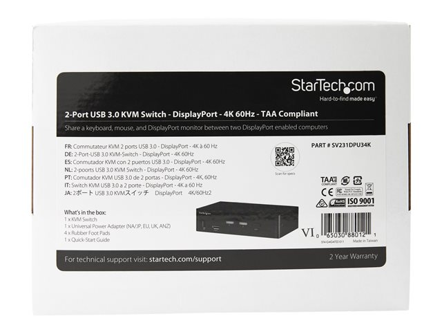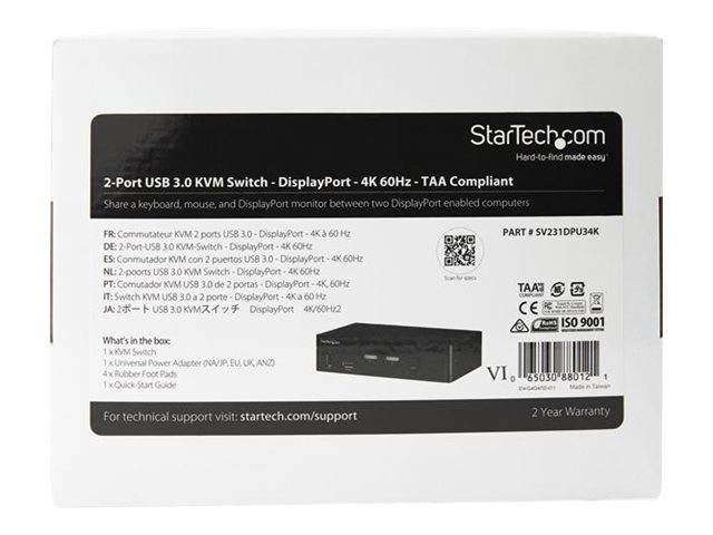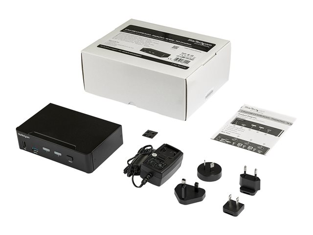 StarTech.com DisplayPort KVM-switch med 4 portar - 4K 60 Hz - Omkopplare för tangentbord/video/mus/ljud/USB - 2 x KVM/ljud/USB - skrivbordsmodell - TAA-kompatibel