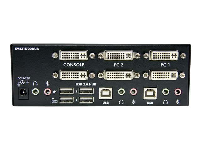 StarTech.com KVM-switch för dubbla DVI-bildskärmar med audio, 2 portar & USB 2.0-hubb - Omkopplare för tangentbord/video/mus/ljud/USB - 2 x KVM/ljud/USB - 1 lokal användare - skrivbordsmodell - för P/N: IM12D1500P, SVA12M2NEUA, SVA12M5NA, USBDVI4N1A10, USBDVI4N1A6