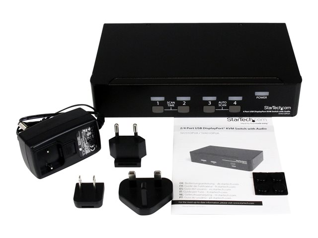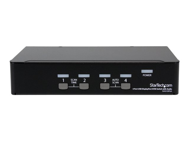StarTech.com USB DisplayPort KVM-switch med 4 portar och audio - Omkopplare för tangentbord/video/mus/ljud/USB - 4 x KVM/ljud/USB - 1 lokal användare - skrivbordsmodell - för P/N: DP4N1USB6, IM12D1500P, SV431RACK, SVA12M2NEUA, SVA12M5NA