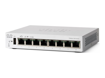 Cisco Catalyst 1200-8T-D - Switch - gigabit ethernet - L3 - smart - 8 x 10/100/1000 - skrivbordsmodell - PoE (67 W)