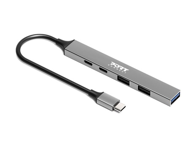 PORT Connect - Hubb - 1 x USB-C + 1 x USB-C (strömleverans) + 2 x USB-A 2.0 + 1 x USB-A 3.2 Gen 1 - skrivbordsmodell