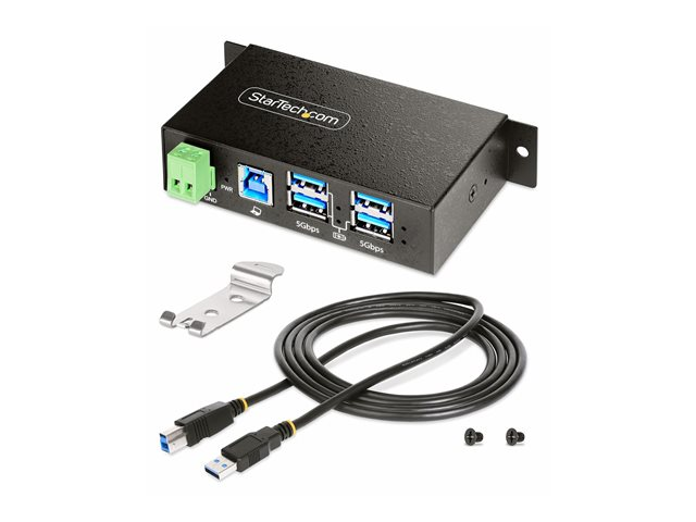 StarTech.com 4-Port Managed USB Hub with 4x USB-A, Heavy Duty with Metal Industrial Housing, ESD & Surge Protection, Wall/Desk/Din-Rail Mountable, USB 3.0/3.1/3.2 Gen 1 5Gbps - Hubb - 3 x USB 3.2 Gen 2 + 1 x USB 3.2 Gen 1 - väggmonterbar, skrivbordsmodell, DIN-skenmonterbar - TAA-kompatibel