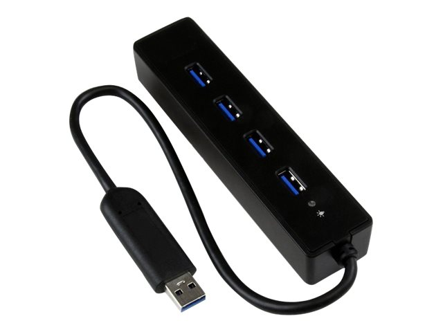 StarTech.com 4-Port USB 3.0 Hub with Built-in Cable - SuperSpeed Laptop USB Hub - Portable USB Splitter - Mini USB Hub (ST4300PBU3) - Hubb - 4 x SuperSpeed USB 3.0 - skrivbordsmodell - för P/N: FCREADMICRO3, MSDREADU3CA ST4300PBU3