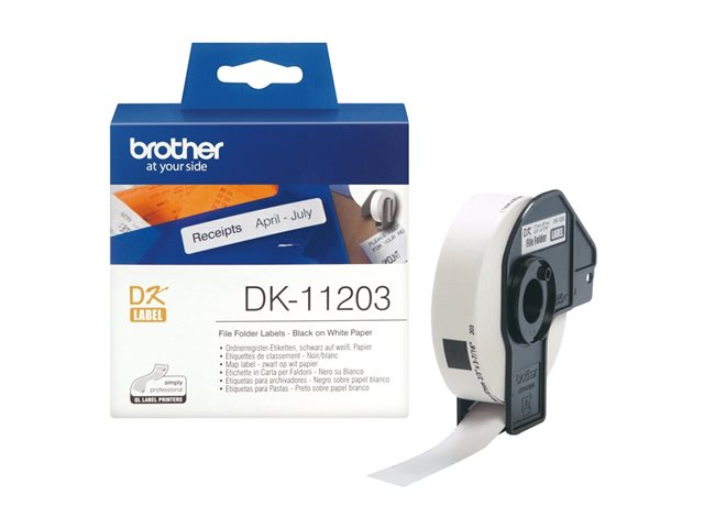 Brother DK-11203 - Svart på vitt - 17 x 87 mm 300 etikett (er) (1 rulle/rullar x 300 etiketter för filmappar - för Brother QL-1050, QL-500, QL-550, QL-560, QL-570, QL-650, QL-710, QL-720, QL-820 DK11203